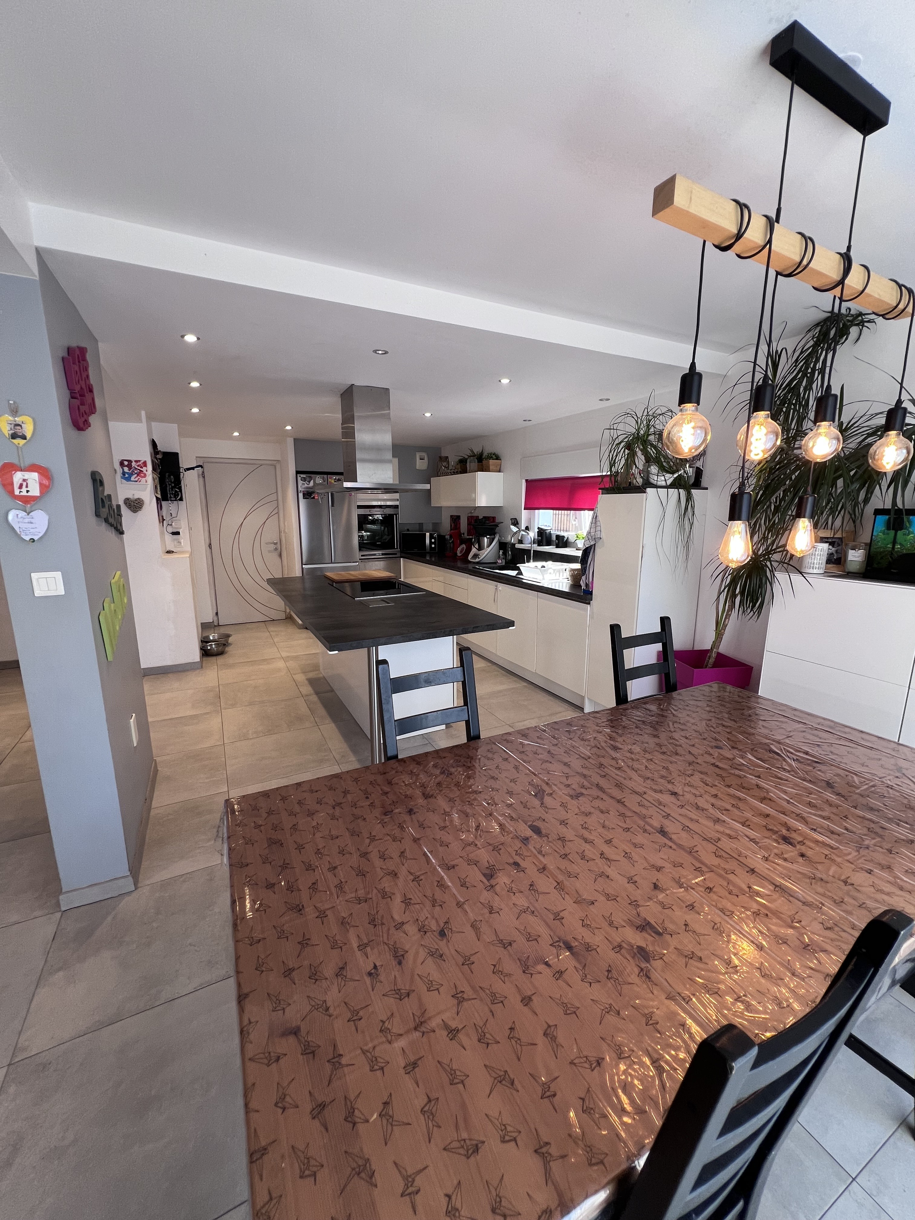 A 10mn de Sélestat, dans un petit quartier paisible et au fond d'une impasse, charmante maison récente de 2014 de 100m2 sur 3,16 ares, comprenant un très bel espace de vie ouvert de plus de 40m2 avec grande cuisine équipée et son ilot central, salle à manger et séjour donnant de plain pied sur la terrasse et le jardin.. A l'étage, un palier permettant d'installer un coin bureau, trois chambres et une spacieuse salle de bains avec baignoire et douche à l'italienne.
